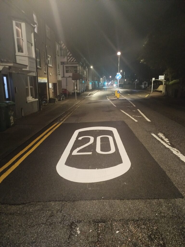 The road roundels and signage for the new Sandgate 20mph zone are being installed across the village.